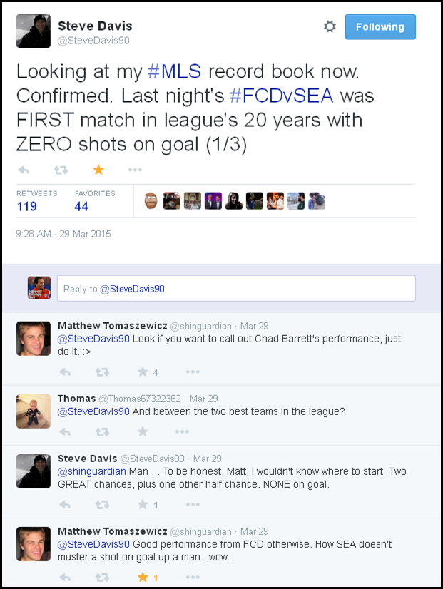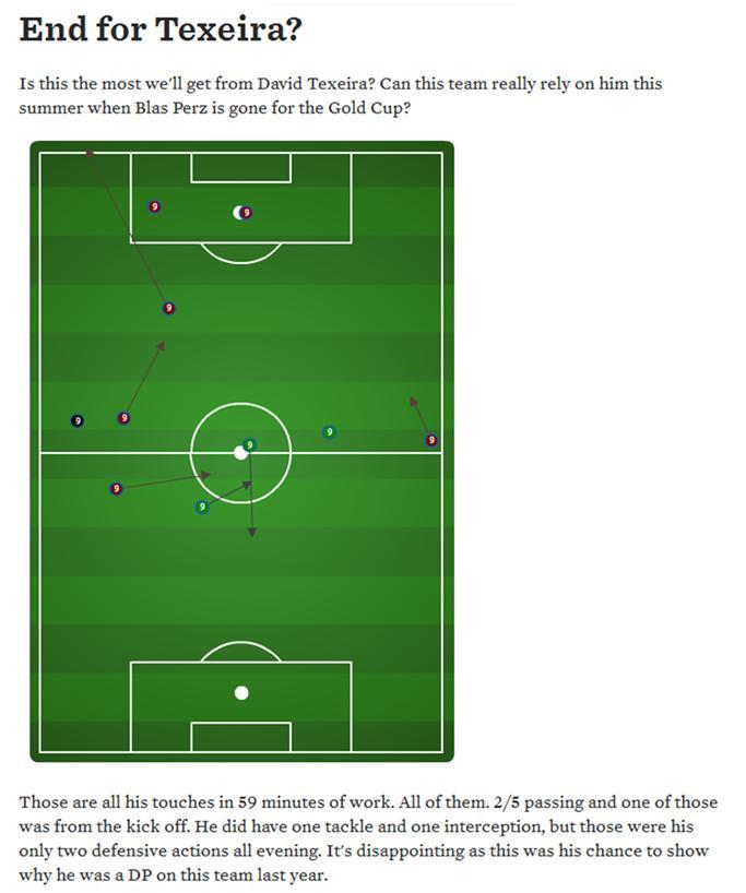 Despite not picking up a red card, striker David Texiera (getting his first start of 2015 in place of Panamanian Blas Perez) accomplished about as much as Acosta on a discouraging night for the young Uruguayan. Jason Poon, who writes about FC Dallas at Big D Soccer, had this to say about David Texiera’s shift against Seattle.