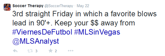 This one cost the MLSinVegas series a clean three hundo. I did not watch (Happy Memorial Day!), so I have no idea how this could have happened. I saw this match playing out either 2-0 or 3-1 to New York and thought the Red Bulls would make short work of The Union in Red Bull Arena.