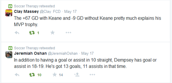 TOTWimageThe TOTW section has been a little light on numbers lately. This week we’ll give credit to the two fellas below for sharing these stats about two of MLS’ best.